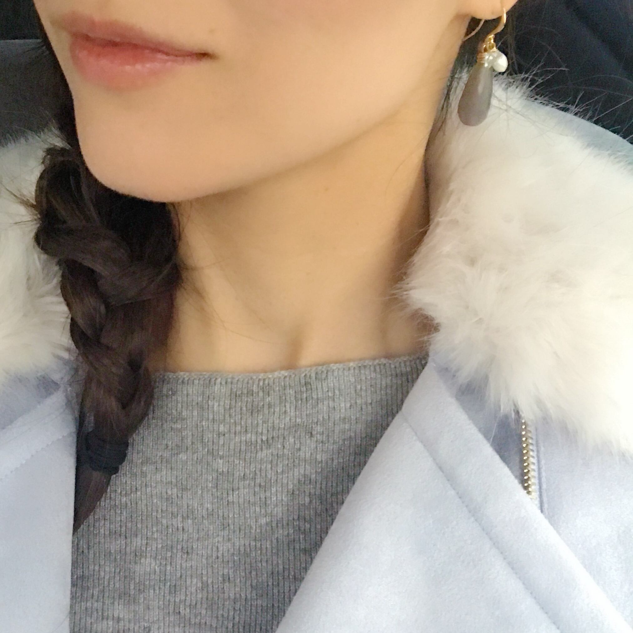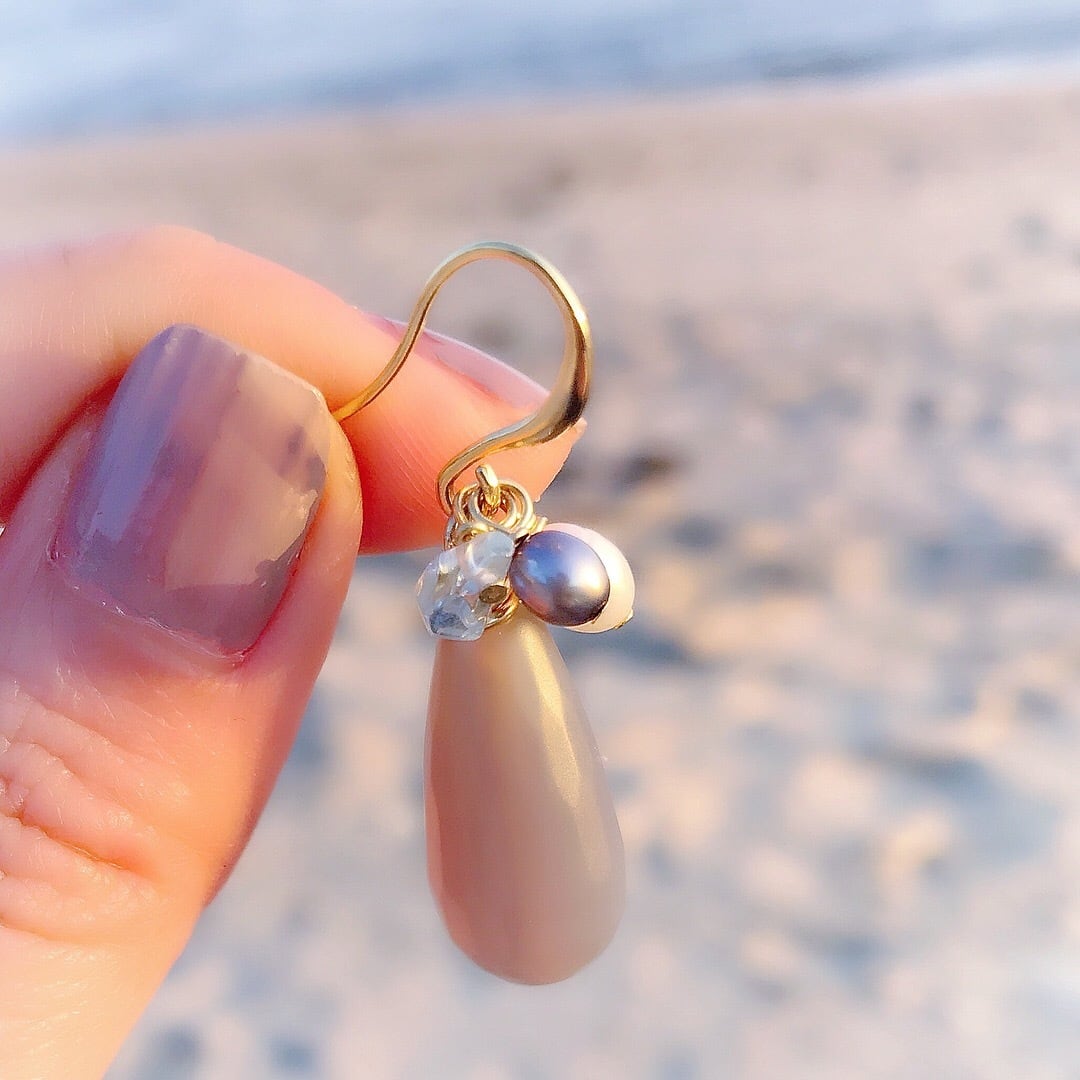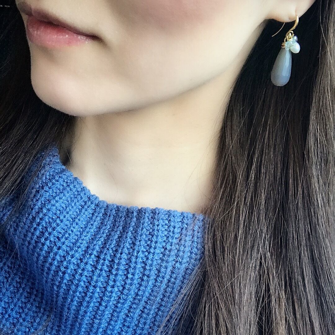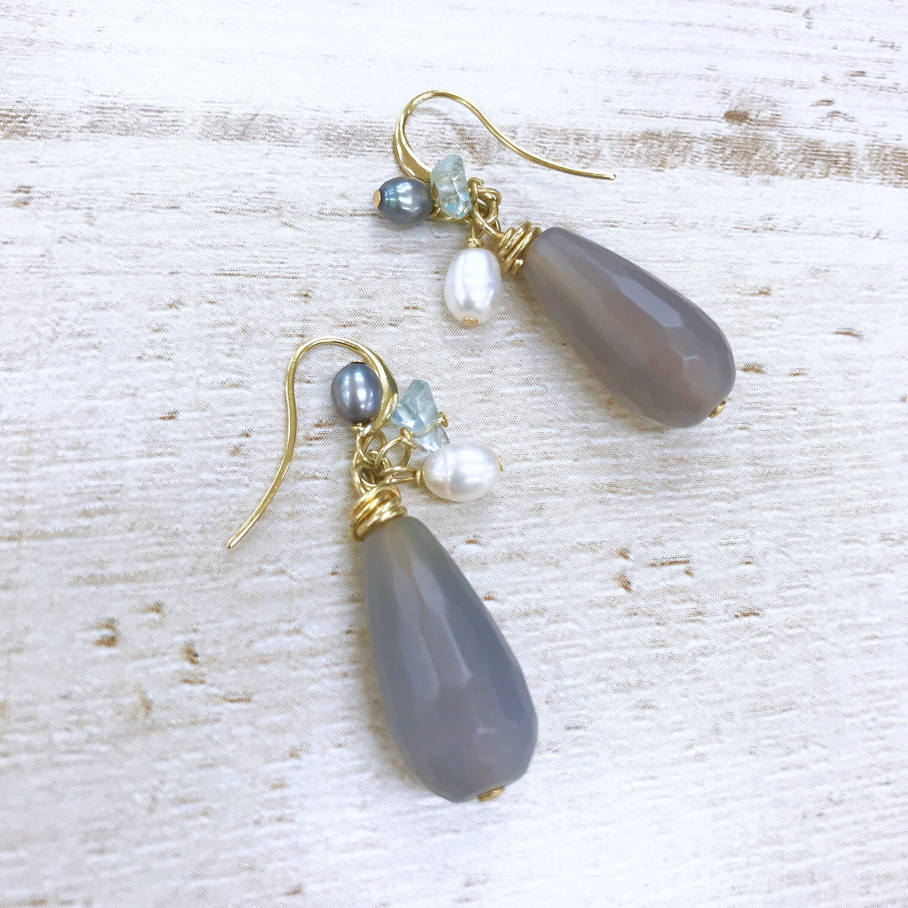 ツヤ感をおさえたマットなグレーのアゲートにベビーパール アクアマリンをあわせた華やかなピアス。