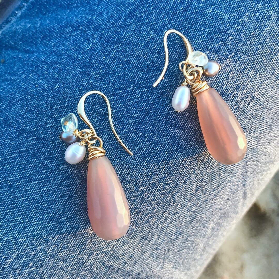 アゲート&パール&アクアマリン ピアス