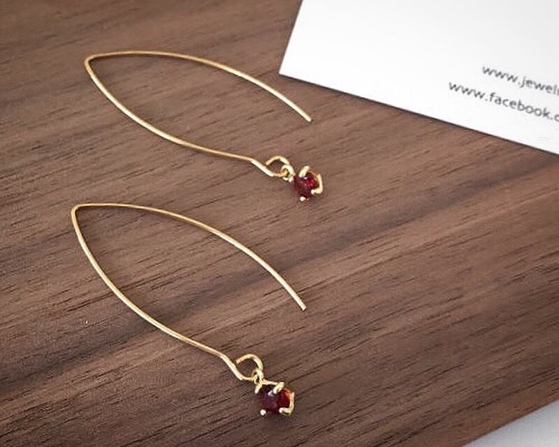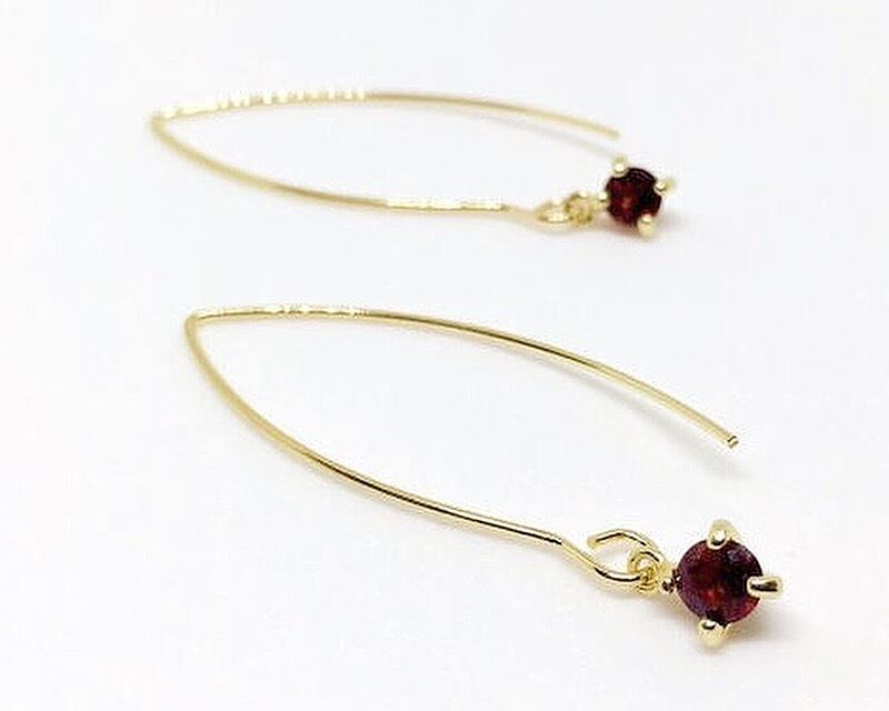 揺れる一粒のガーネットがポイントのシンプルなデザインピアスです。