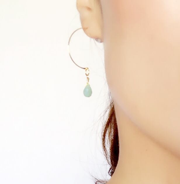 揺れる雫アマゾナイトにおしゃれなハーフフープフックを合わせました。 ちらりとのぞくパールキャッチがポイントです。 夏らしい雰囲気があり、コーデを引き立てます。 また、パールキャッチは使い回しができ、お手持ちのピアスにも合わせられるので活用できます。 ※イヤリング加工の場合はパールキャッチなしになります。 *素材 銅製 アマゾナイト パールキャッチ(樹脂)