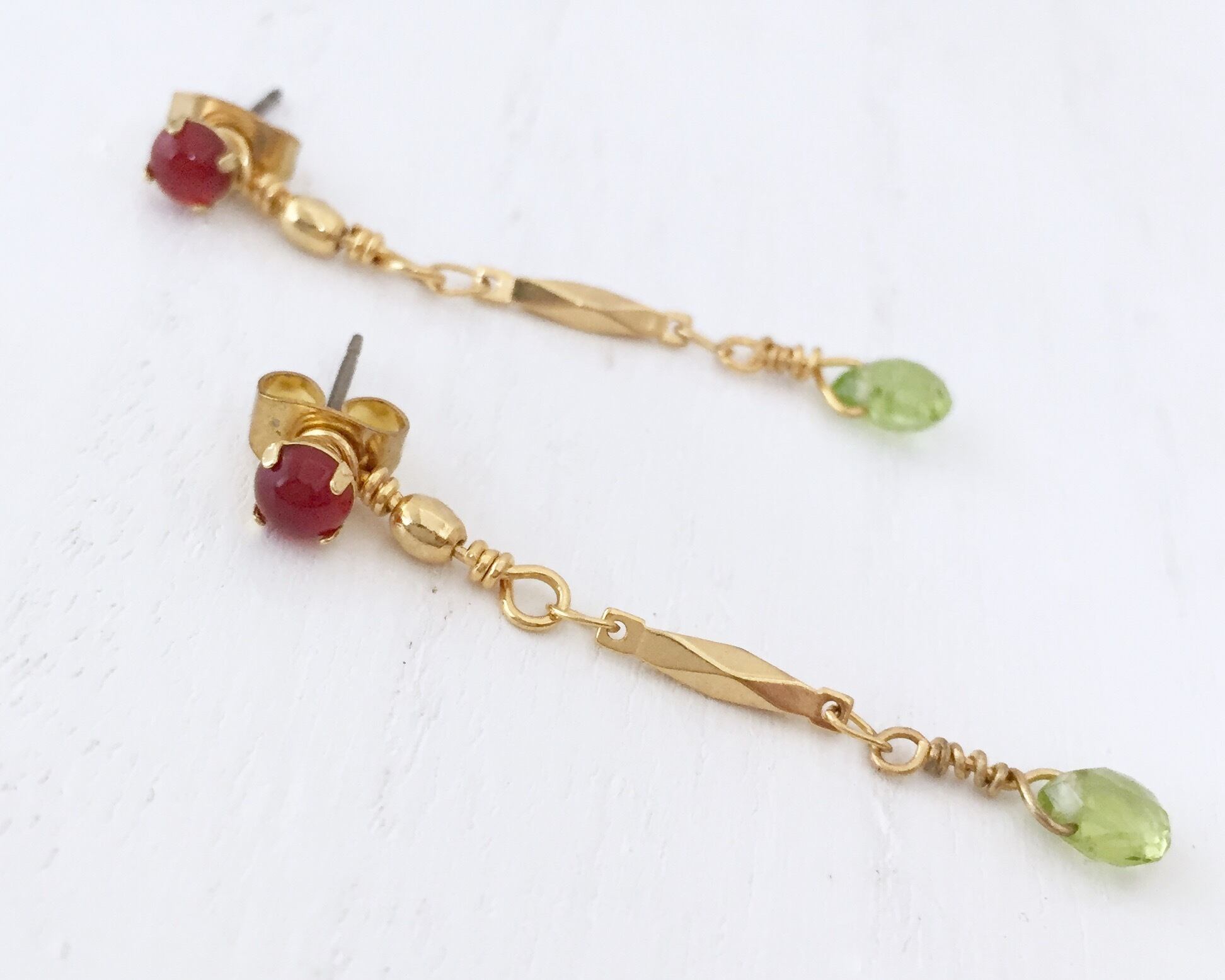 カーネリアンの赤とペリドットの黄緑とあわせることで、お互いを引き立てあう魅力あふれるものになりました。