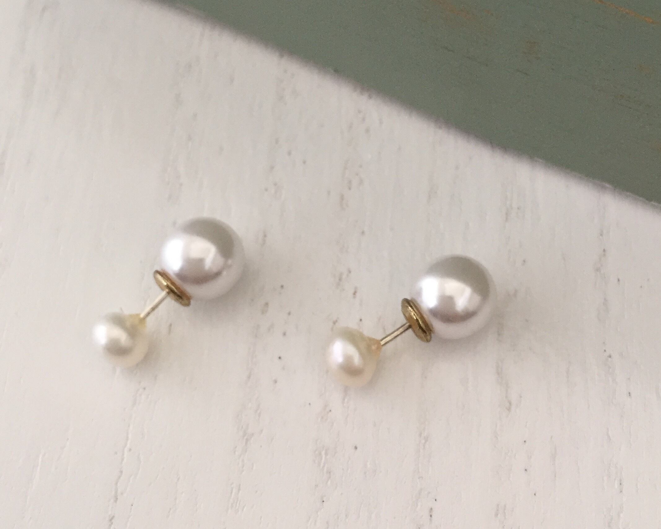 ホワイト淡水パール4mm × パールキャッチ8mm ダブルパール2WAYバックキャッチピアス 天然石 パワーストーン ピアス