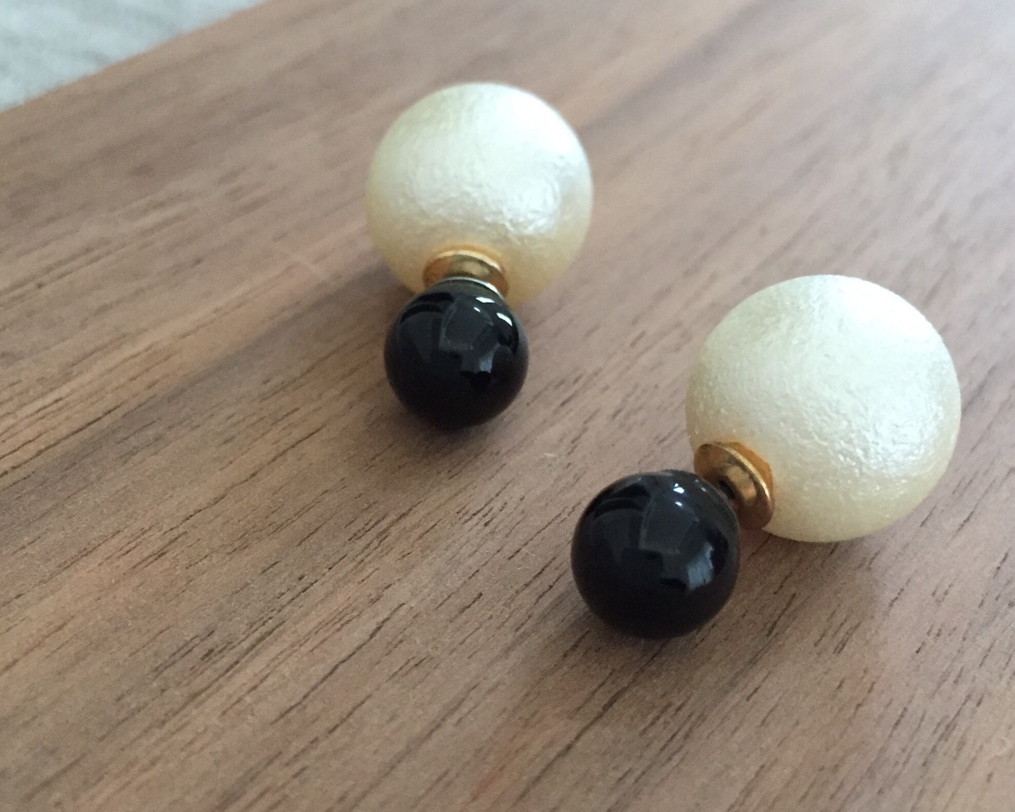 *素材 オニキス 約8mm コットンパールキャッチ 約14mm