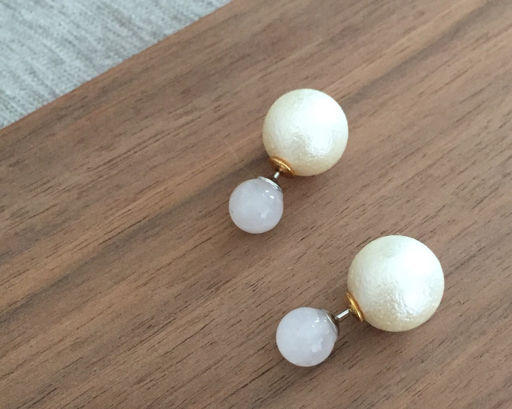 *素材 ローズクオーツ約8mm コットンパールキャッチ約14mm