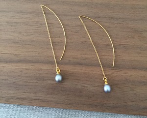 揺れる一粒の淡水パールが可愛いピアスです。
