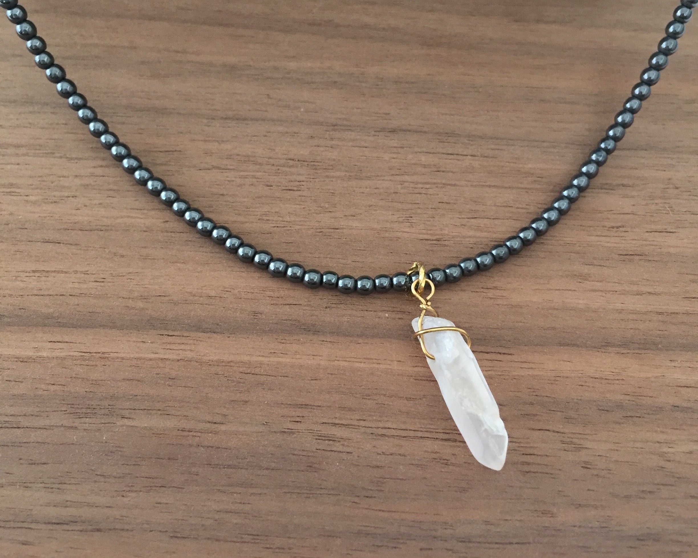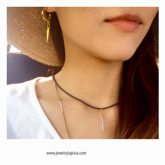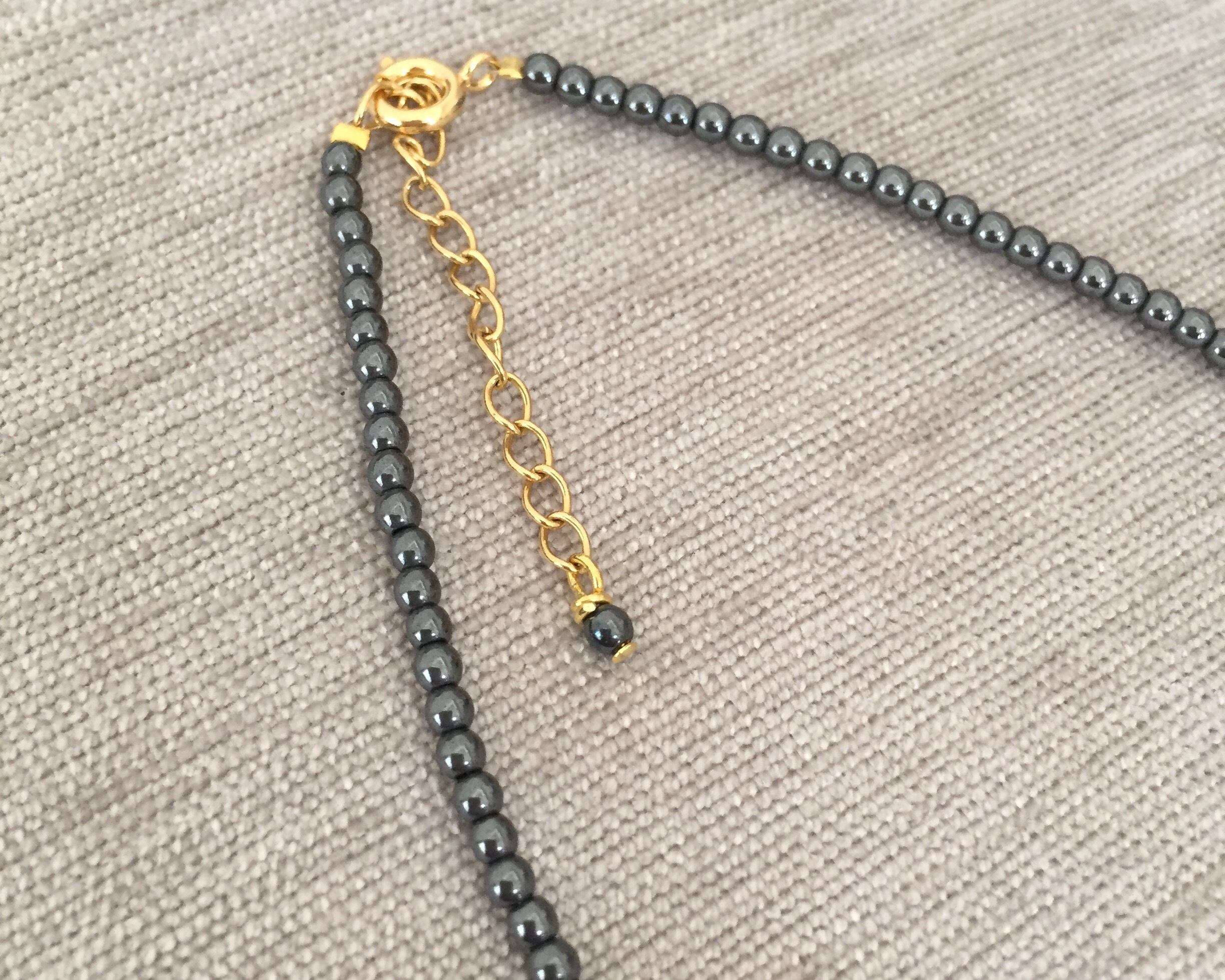 ヘマタイトのチョーカータイプのネックレスは約40〜45cmでアジャスターによる調節が可能になっています。