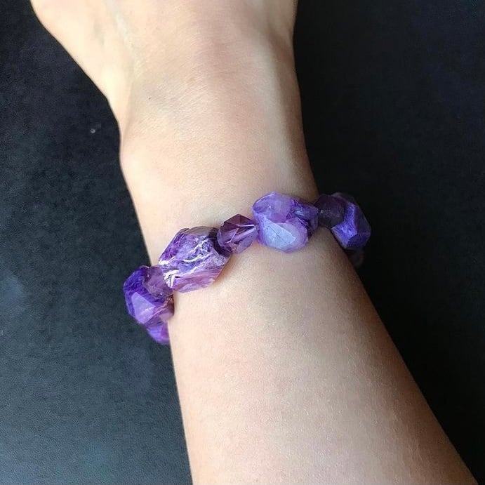 チャロアイトとアメジストの組み合わせは、強力な浄化作用。負のエネルギーを浄化し、外から受けるネガティブなエネルギーをはらいのけ、自身のスペースを安定して守ってくれます。