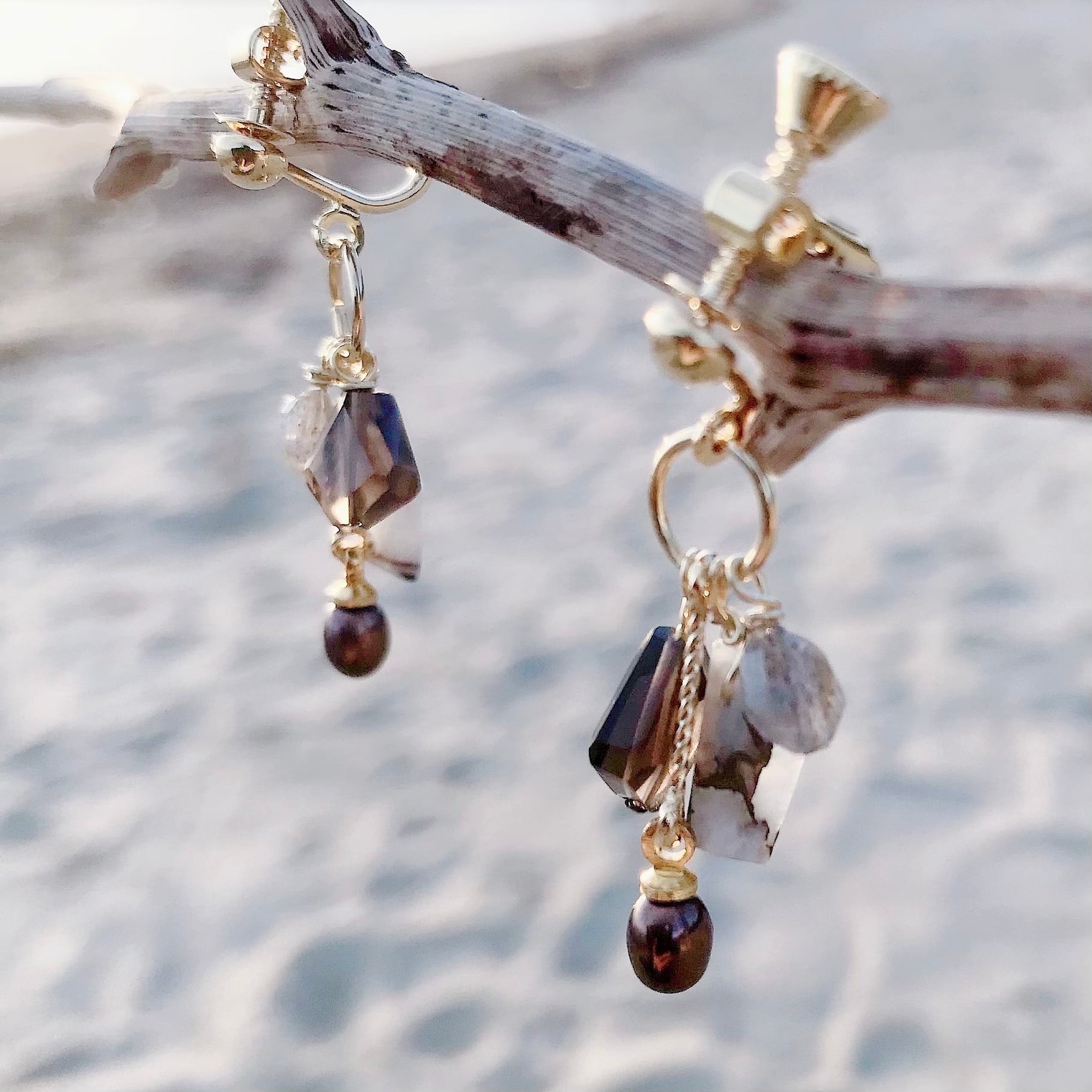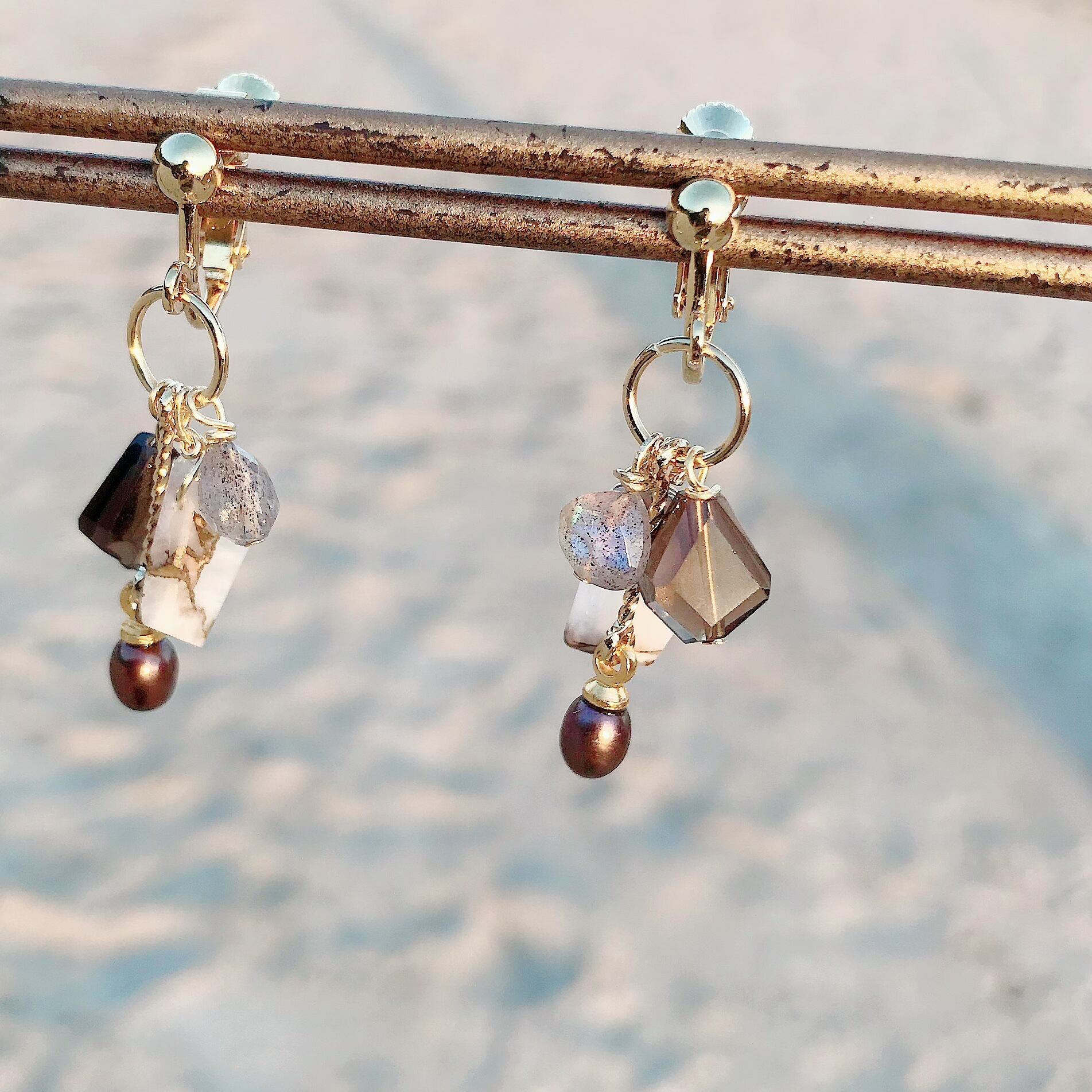 大地と繋がるエネルギーをもったスモーキークォーツに、信念をつらぬくラブラドライト、