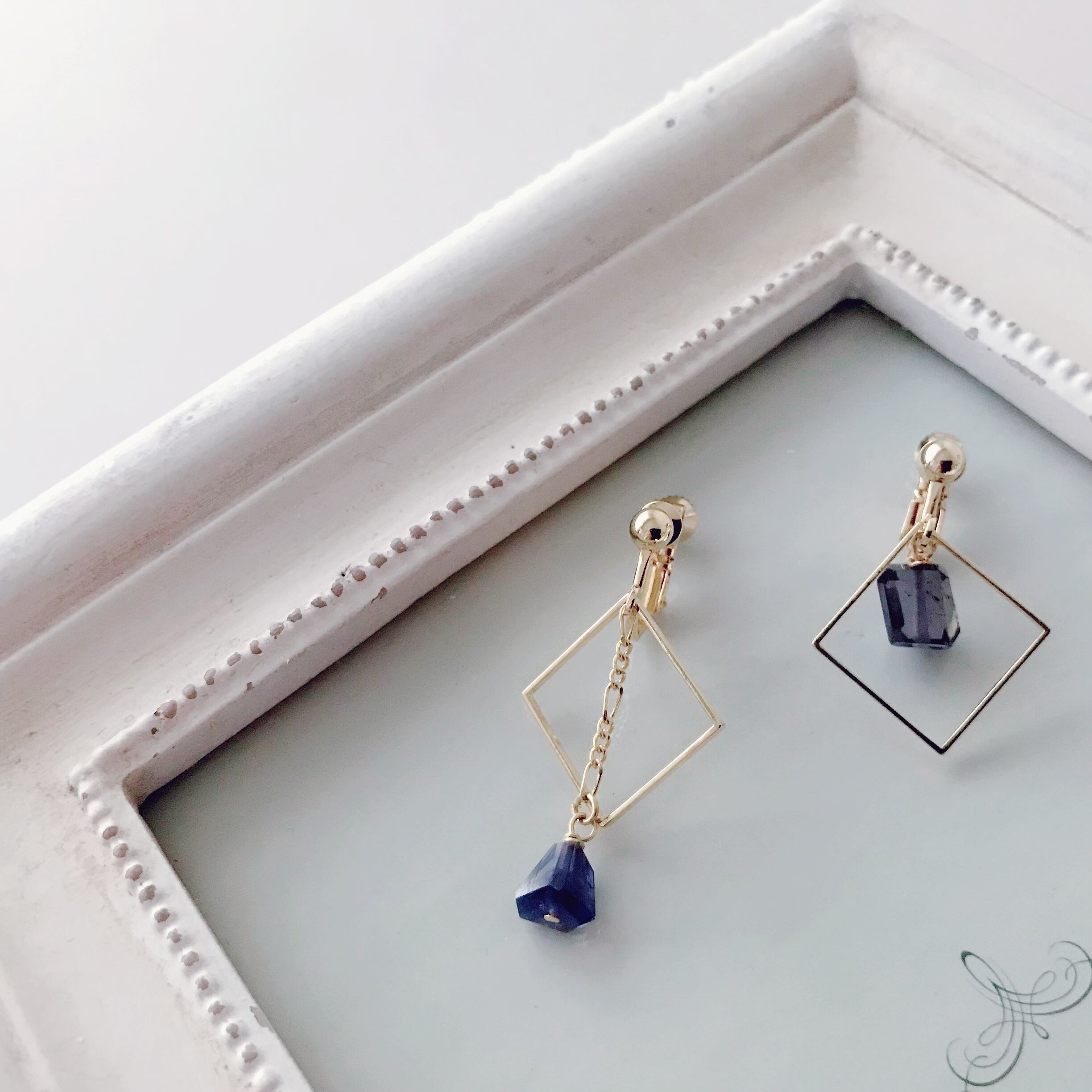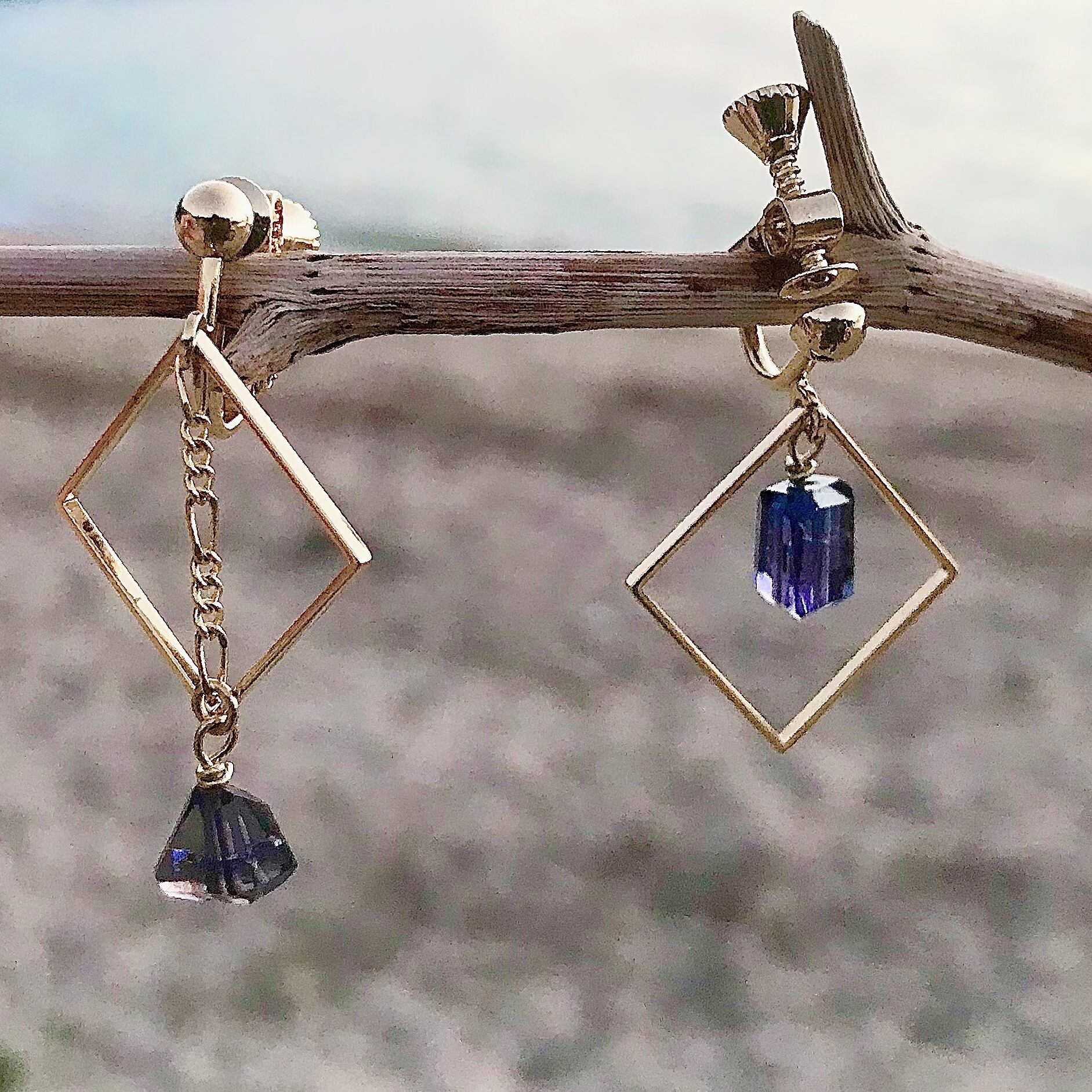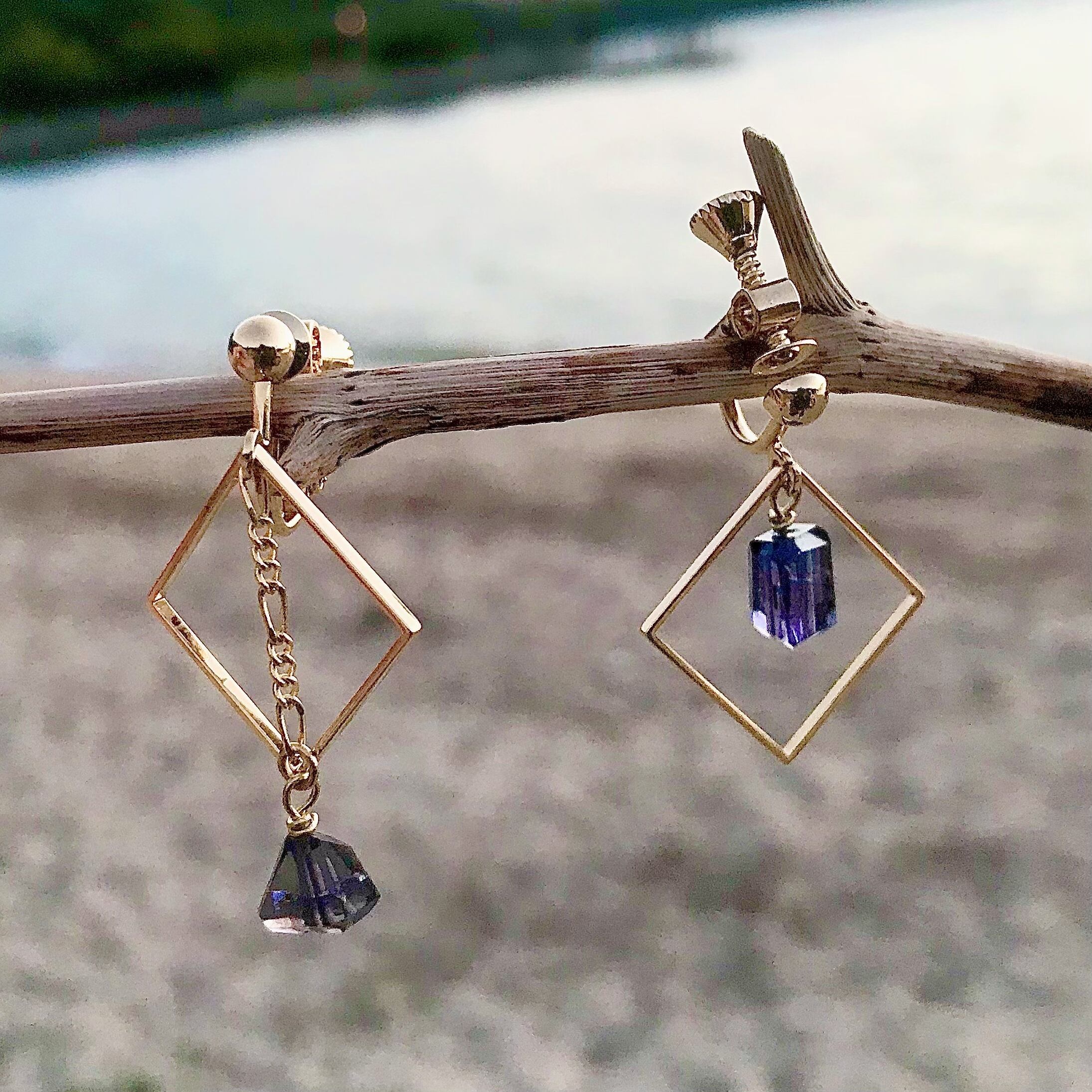 アイオライトを使用したアシンメトリーなデザインのイヤリング。 シンプルながらも個性的なデザインは、普段使いから特別な日のコーディネートまで幅広く活躍します。 アイオライトは、その美しい輝きと神秘的な色合いで古代から宝飾品として重宝されてきました。 それぞれの石には異なる表情があり、唯一無二のアクセサリーとして楽しめます。 このアイオライトの魅力を身に纏い、日々の暮らしに少しだけ魔法をかけてみませんか。 ※石の特性上、多少の個体差がございますのでご了承ください。