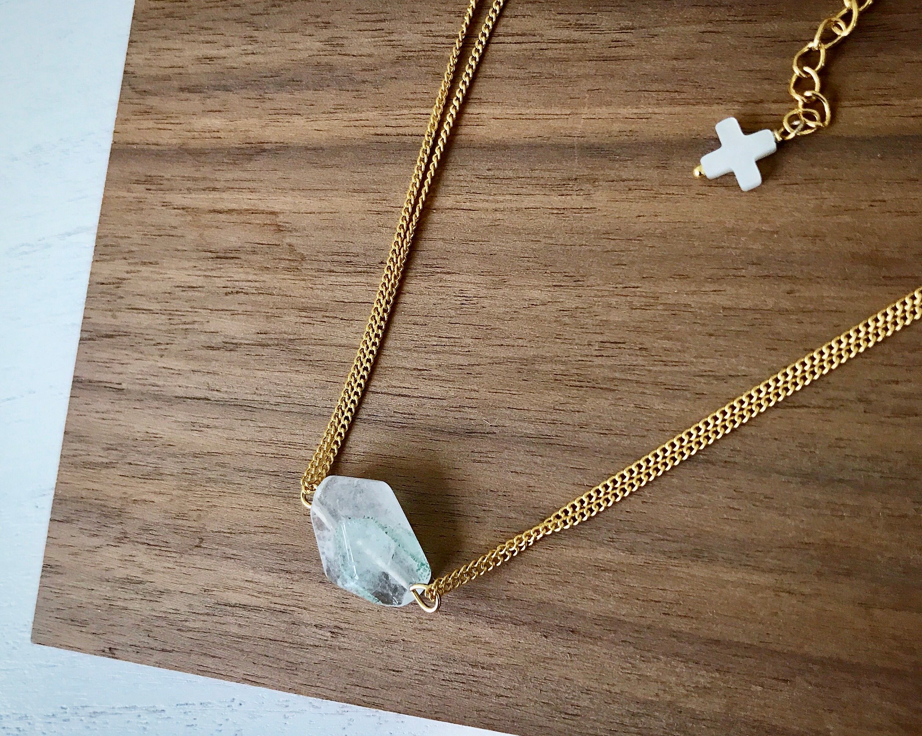 グリーンファントムはとてもめずらしい天然石で、水晶のなかに緑色の鉱物の層が重なりあっているものがみられます。