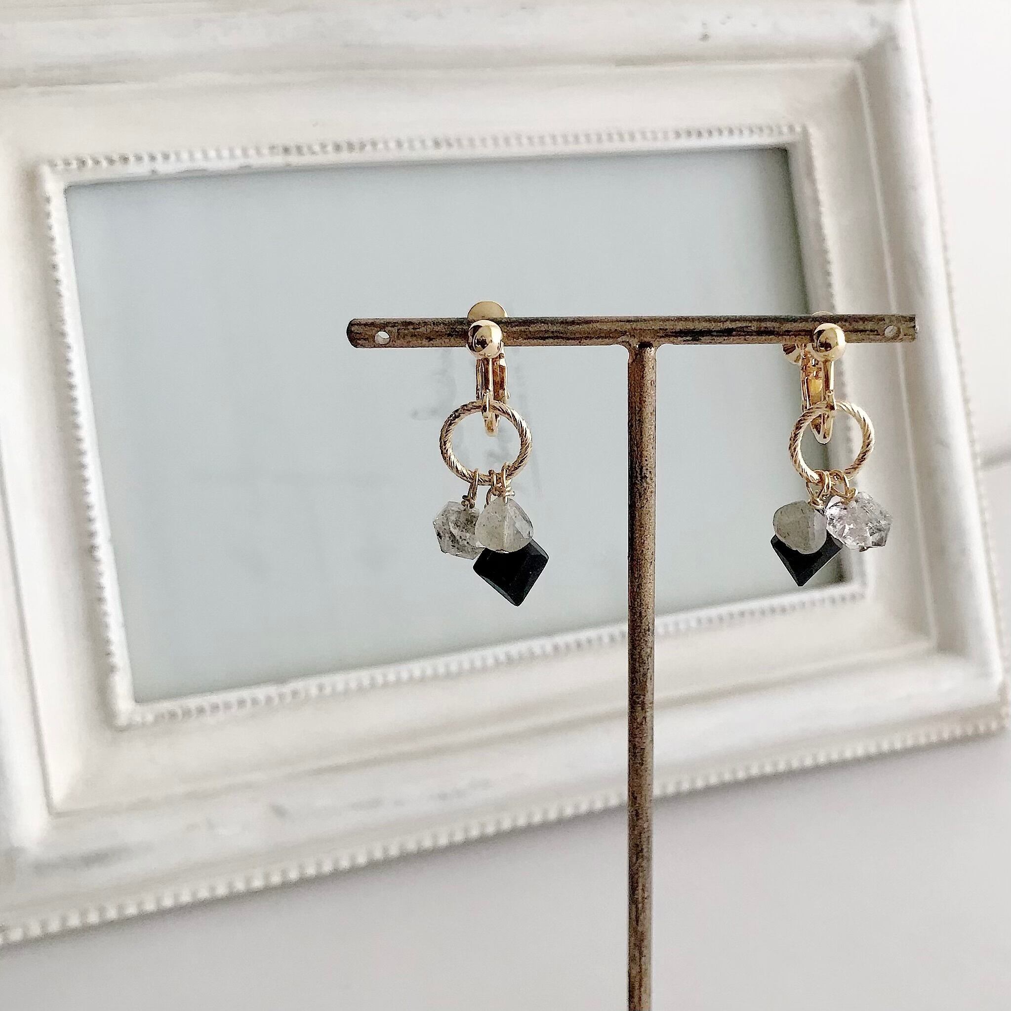 癒されたいときのお守り 心身の浄化 ヒーリング効果 厄除魔除 オニキス✴︎ハーキマーダイヤモンド✴︎ラブラドライト イヤリング⭐︎ピアス変更可